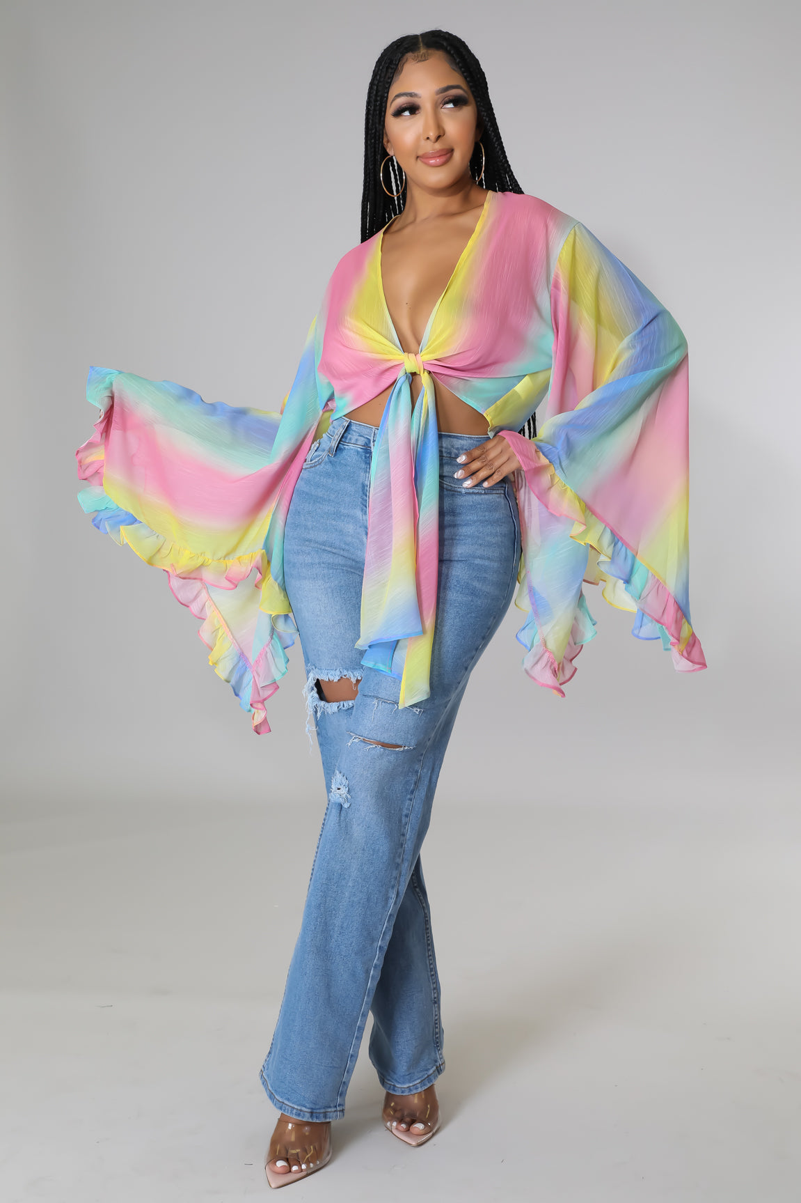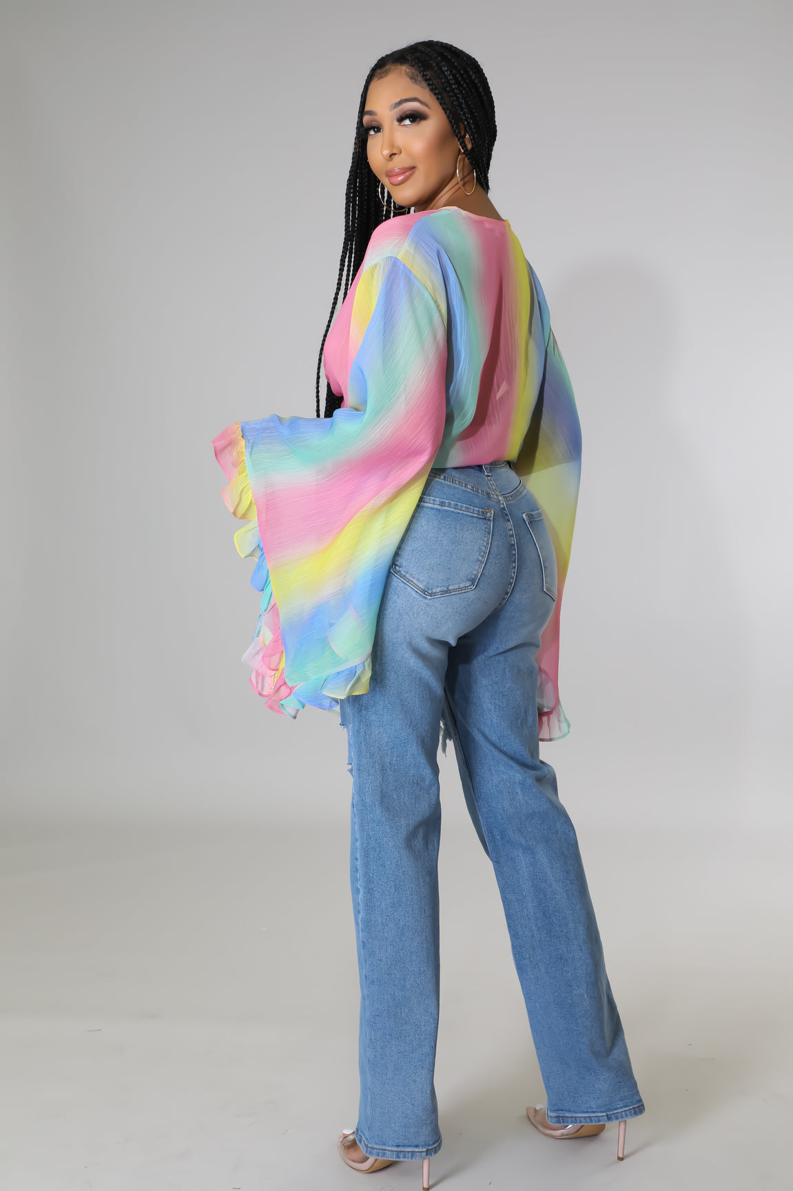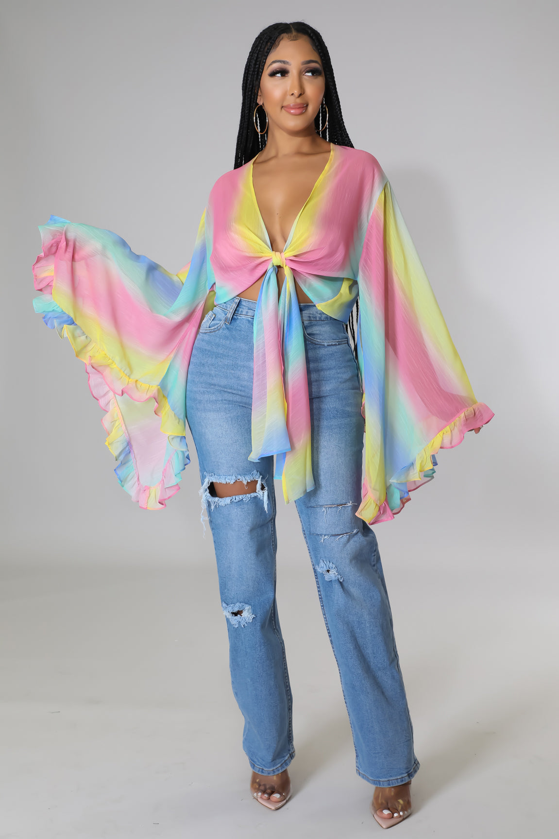 • Long bell sleeves