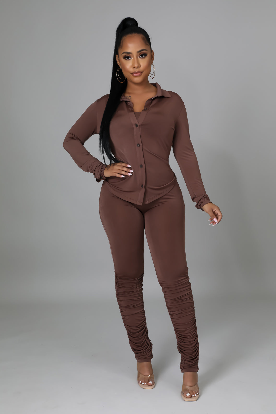 - Ruched bottoms